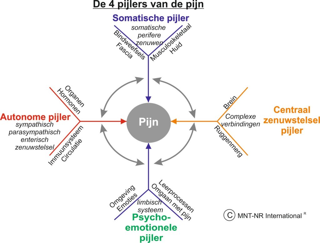 De MNT richt zich op alle aspecten die de pijn veroorzaken. (4 pijlers)